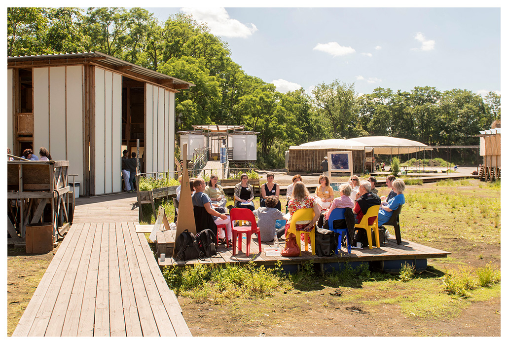 - Der wirklich sehr inspirierende Ort der floating university, in seinem anderen Leben das Regenrückhaltebecken des Flughafens Tempelhof, das mit seinem Stegsystem ein inspirierendes Gelände mitten in Berlin bildet.