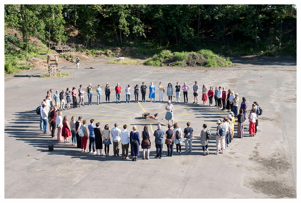 Den Abschluss bildete ein Ritual. Statt wie sonst „Essenzen“ oder „wichtige Erkenntnisse“ noch einmal zu drehen, schickten wir – kurz vor der Sommersonnenwende – einen Impuls in die Welt mit unseren Wünschen, die so spürbar waren während dieses Tages: nach Verbindung und Miteinander; nach einer kreativen Gestaltung des Endes in menschen- und umweltfreundlichen Sinn, nach Kreativität und Zugewandtheit. So dass nach dem Ende wieder etwas Neues entstehen kann.
